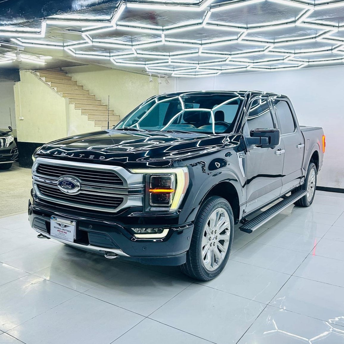 Ford F150 LIMITED Power Boost 2021 Model Hybrid,35KWH Electric Motor,2.4KW(2400 Watts)Generator Pro Power Onboard, Range Provided On Per Tank 700Mi,4WD, Adaptive Cruise Control, Lane Assist, Auto Park,360 Cameras, Heated Ventilated & Massage Seats With Memory Option, Push Start, Parking Sensors, Wireless Charger, Dual Zone Climate Control, Rear Heated Seats, Panoramic Roof, Electronic Bed Gate, Android Auto Apple Car Play, Cool Box, Drive Modes Normal, Eco, Sport, Slippery, Tow/Haul, Deep Snow/Sand, Mud/Ruts, and Rock Crawl, Ambient Lights... Mileage 36293 Unregistered