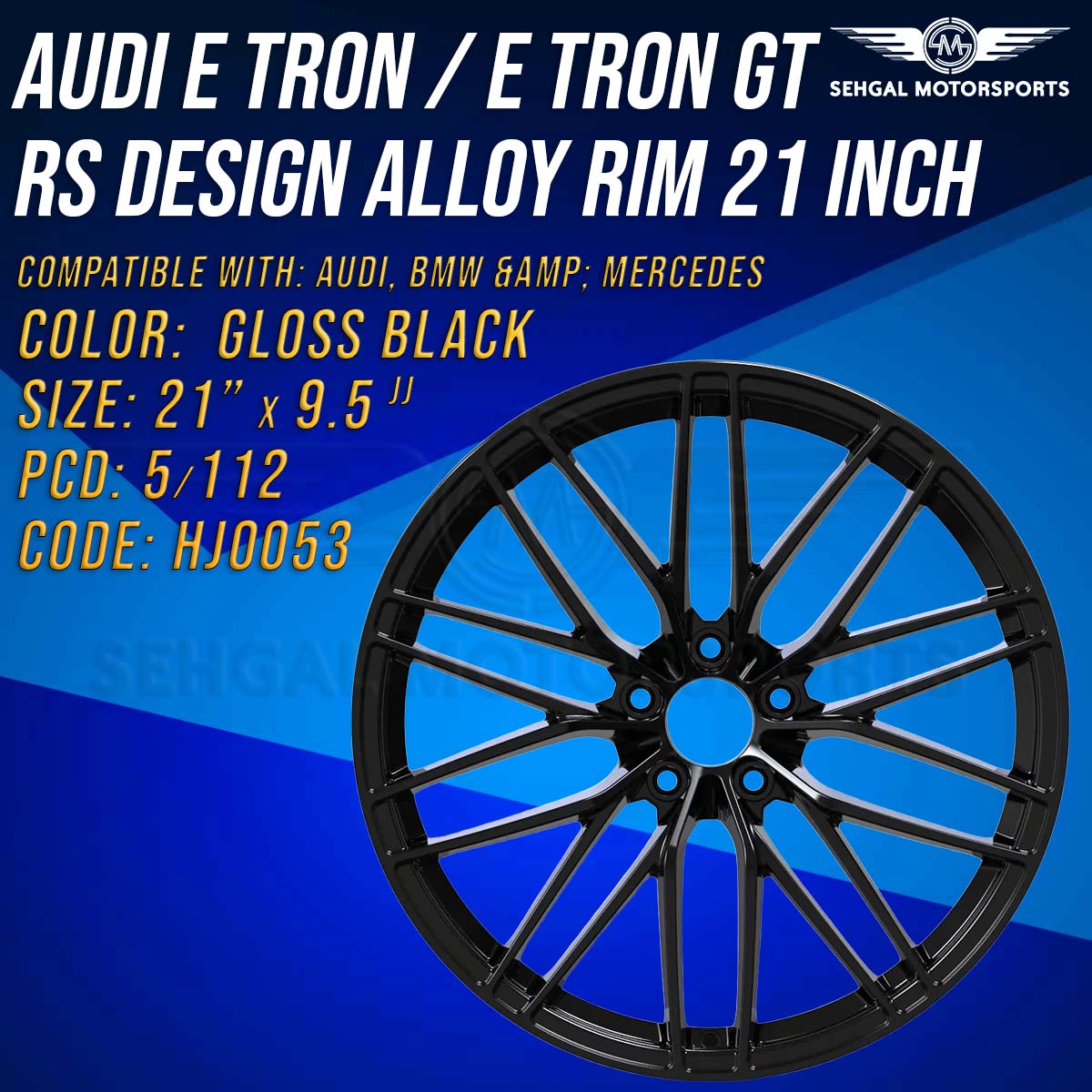 Audi E Tron / E Tron GT RS Style Alloy Rims 21 inch (HJ0053): Color: Gloss BlackAlloy Rim Size: 21*9.5 InchCompatible...