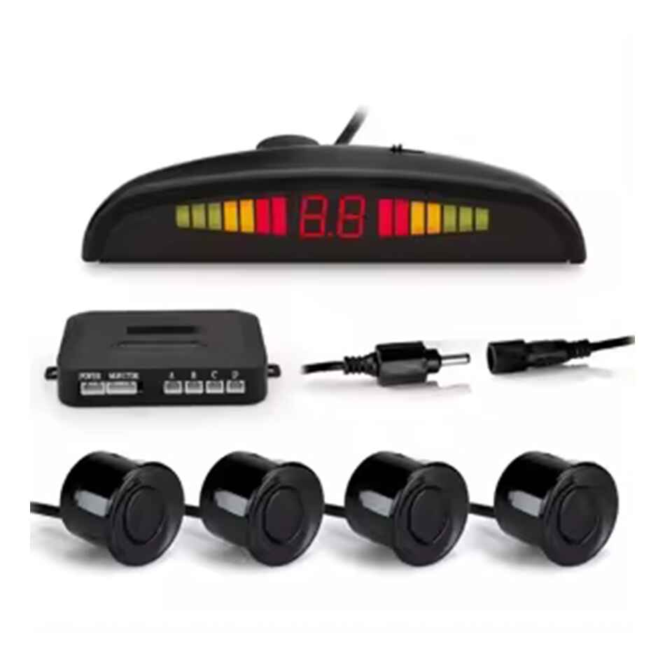 Increase your parking awareness and avoid accidental bumps with these black PLC 4 universal parking sensors. This sensor system detects obstacles behind your car while parking, providing audible warnings to prevent collisions.