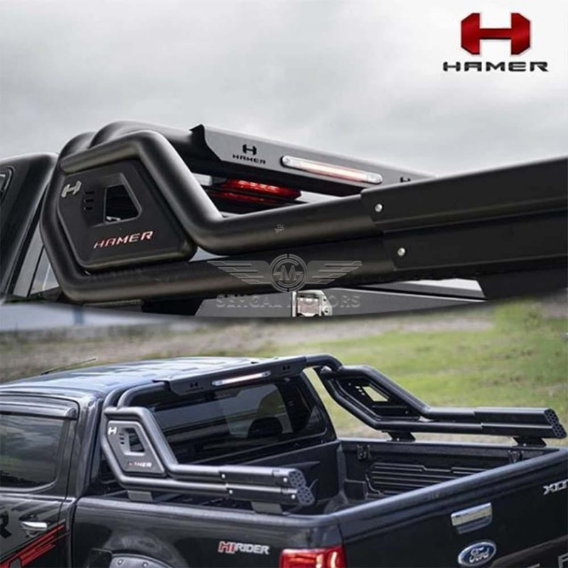 The Toyota Hilux Revo Roll Bar Hammer Double Pipe PK Bazooka (2017-2024) adds a rugged and bold look to your vehicle. Designed for durability, this roll bar provides extra support and style to your car’s rear. Made from high-quality materials, it provides strength and long-lasting performance.